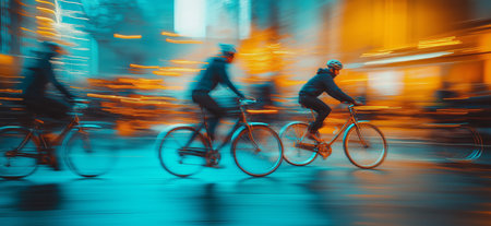 Cycling in the city. Urban cycling. Motion blurred people riding bicycles in the city
