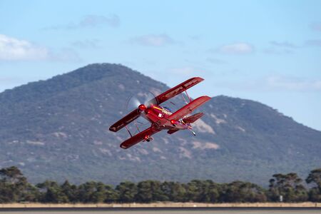 Avalon, Australia - March 2, 2013: 13 Time Australian Aerobatic Champion Chris Sperou flying his Pitts S-1-11B Super Stinker aerobatic biplane VH-XPS.