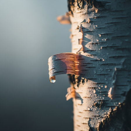 birch bark with a drop of water on a sunny day