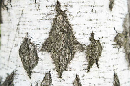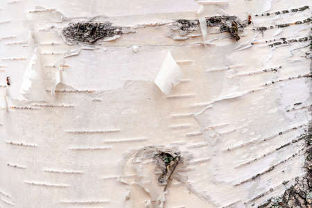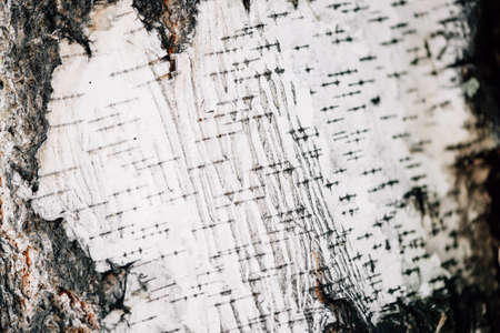 White birch bark macro background texture. Yasnaya Polyana Tula Russia.
