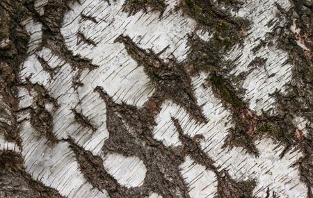The trunk of a birch tree. Black and white stripes and cracked natural texture of Russian birch bark. High quality photo