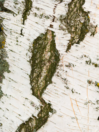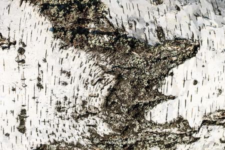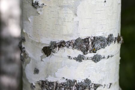 Birch bark, texture. Birch trunk with lichen closeup