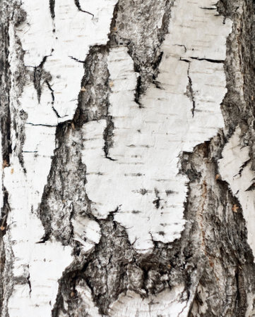 Close-up of birch bark texture, showcasing nature's intricate patterns. Detailed birch bark surface.