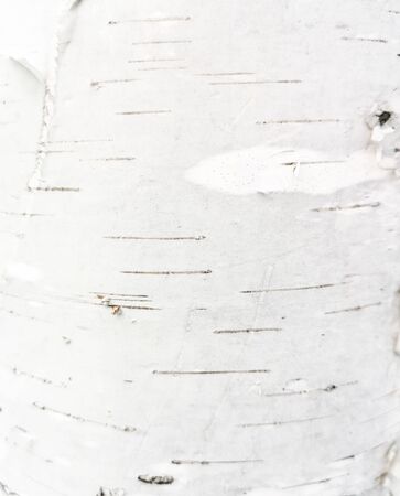 White nature background of birch bark close-up. Plane of birch trunk surface. Tree textured backdrop. Detailed natural texture of birch tree stem. Abstract background.