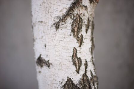 Close-up of a birch tree trunk on grey background