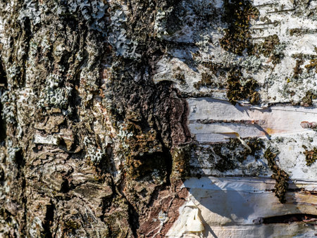 Close-up view of birch tree bark showcasing its unique patterns and textures. the image highlights the natural beauty and complexity of tree surfaces, perfect for nature-themed designs or educational purposes.