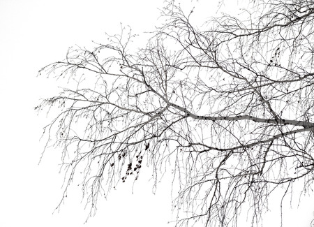 The Birch in winter, chilling air envelops, a few lingering leaves tremble, still atmosphere