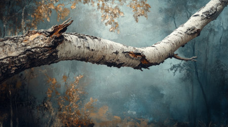 Landscape with birch tree trunk and branches