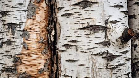 Close-up view of birch tree bark showcasing its unique patterns and textures. the image highlights the natural beauty and complexity of tree surfaces, perfect for nature-themed designs or educational purposes.