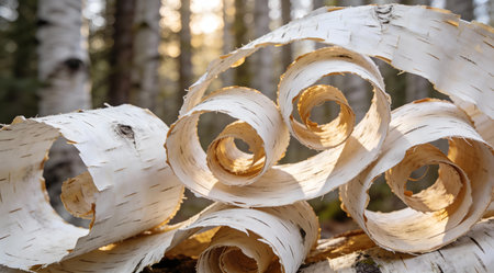 Sophisticated digital artwork highlighting intricate organic textures, papery curls, and gentle forest soft lighting in pristine white tones. Evokes rustic luxury and serene natural elegance, ideal for premium packaging, luxury stationery, upscale interior decor, and sophisticated branding graphics. Versatile asset for designers and marketers in high-end comm... AI-generated digital illustration. AI-generated illustration.