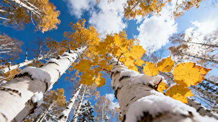 Beautiful white birch trees with bright yellow leaves during the fall season