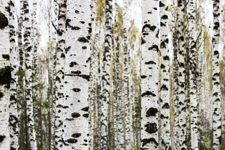 Birch forest. Birch Grove. White birch trunks. Autumn forest. Selective focus