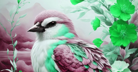 Vibrant Bird flowers portrait. Life still. Generate Ai