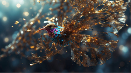 Abstract animal little Bird portrait with multi colored colorful on wings and feathers paint, Vibrant bright gradients tone, with Generative AI.