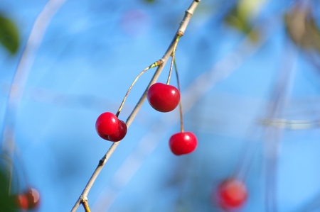 Ripe cherry. Ripe cherry on a background of blue sky
