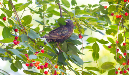 Fresh and sweet cherries ripening in the cherry tree