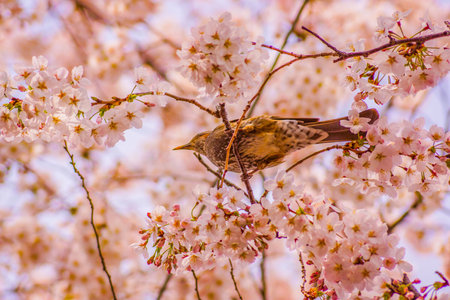 Spring scenery of birds and cherry blossoms. Shooting Location: Ota -ku, Tokyo