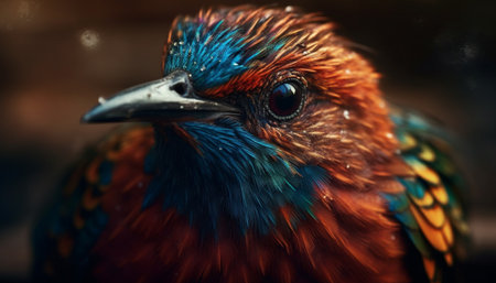 A close-up image of a vibrant blue bird showcasing its detailed feathers and striking features. The rich colors and textures highlight the beauty of this avian species. ai generated.
