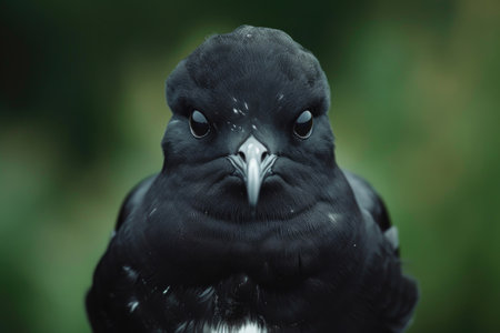 A stunning portrait of a storm petrel, capturing its intense gaze and distinctive markings up close
