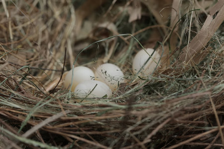 Nest with eggs of a quail in the countryside, Thailand.
