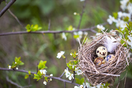 Bird's nest with quail eggs