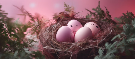 Freshness of springtime celebrated with cute animal nests and colorful eggs generated by artificial intelligence