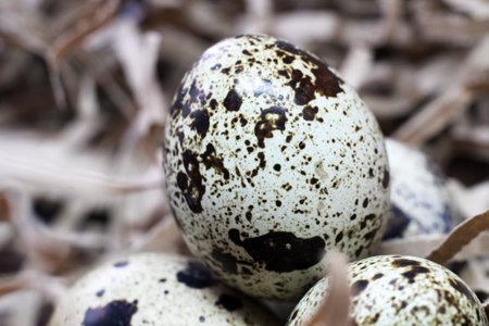 Quail eggs in the nest, close-up shot