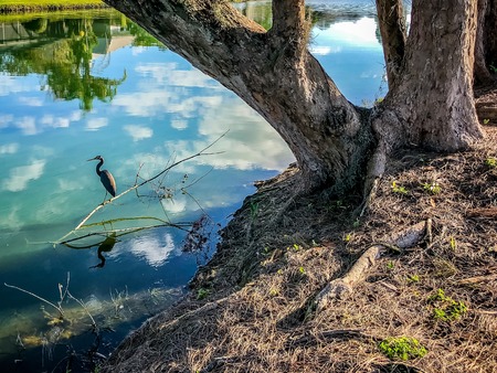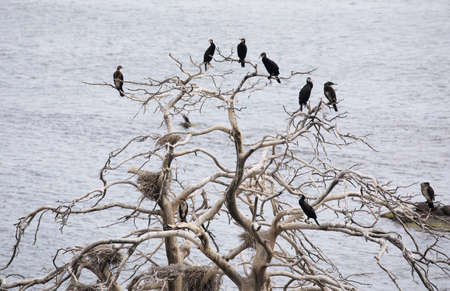 Several birds sitting on the branches of a leafless tree, on the St. John's river, Jacksonville, Florida, USA
