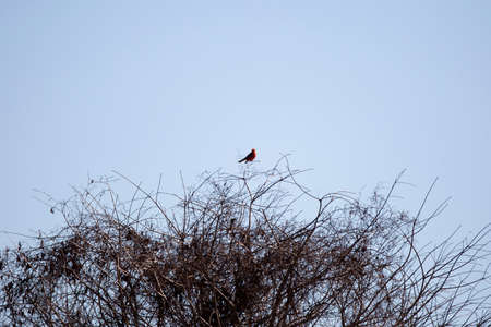 Vermillion flycatcher (Pyrocephalus obscurus) looking out from its perch