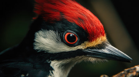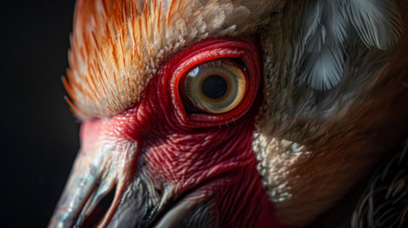 Close up portrait of a vibrant red bird eye, showcasing intricate details and vivid colors, highlighting nature s beauty and wildlife photography