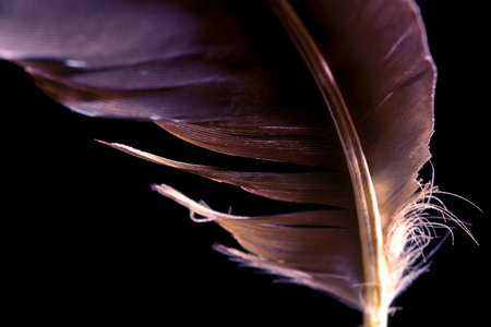 feather of a bird on a dark background close-up macro