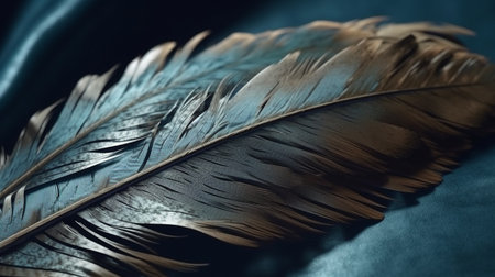 A blue feather on a black background, AI