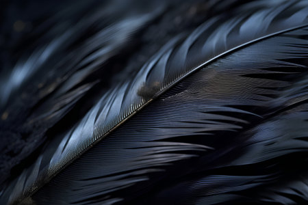 A macro shot of delicate black feathers, showing their fine details and smooth texture in high definition.