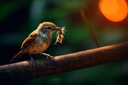 a stunning photograph capturing a bird basking in the sunlight, rendered in cinema4d with meticulous attention to detail. the image showcases a multilayered realism, boasting an impressive 8k resolution. this precisionist artwork, a contest winner, presents a mesmerizing uhd image, where the bird's beauty is enhanced by its composition made entirely of insects. ai generated