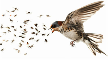 Swift Movements of Swallow on White Background.