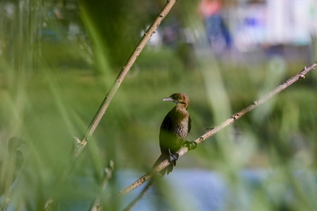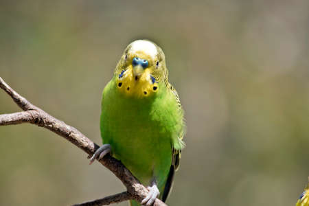 Budgerigar sitting on a branch in the park.