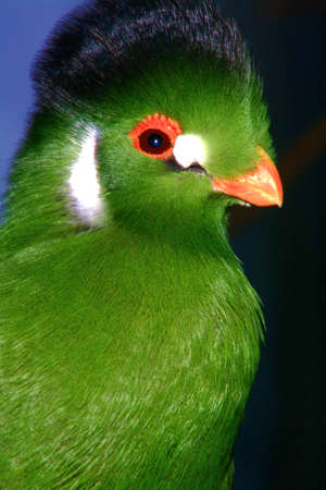 Close up of a beautiful green Turaco, originally from South Africa