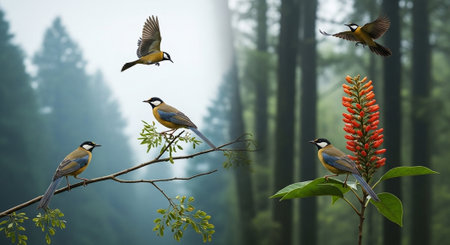 bird sanctuary with diverse bird species in a preserved forest setting with natural habitats --chaos 30 --ar 16:9 --v 6.1 Job ID: c7384d4b-26f2-4d2e-b5ee-be4f33d19ff1