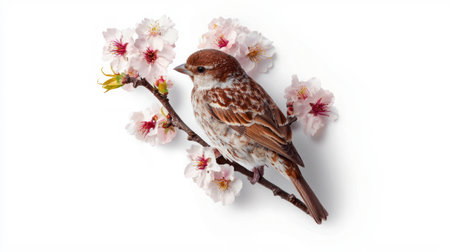 Sparrow perched on sakura blossom branch - nature and tranquility concept
