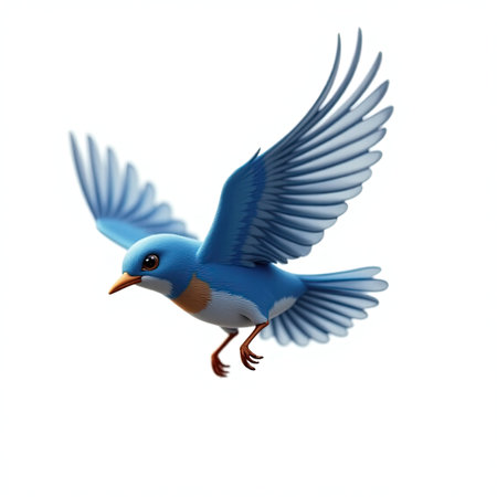 Bluebird flying isolated on white background. 3d render illustration.