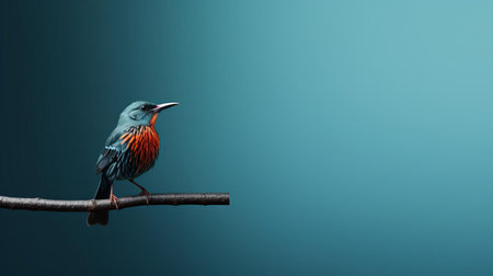 a beautiful bird perches on a solid colored background, providing ample copy space for text or design elements, making it an ideal image for advertising, marketing, and graphic design projects, perfect for nature lovers and bird enthusiasts alike. ai generated