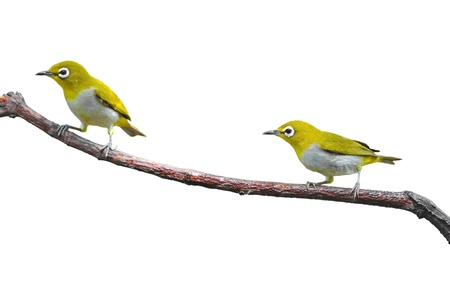Couple of Oriental White-eye Bird sitting on branch on white background