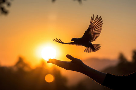 silhouette pigeon flying out of two hand and freedom concept and international day