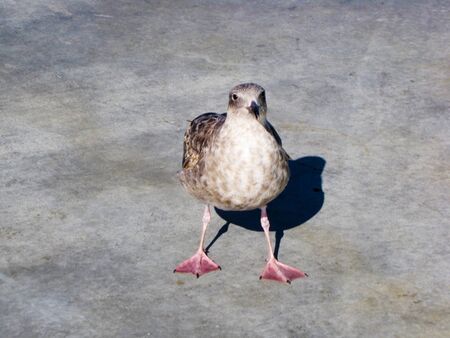 Seagull bird on the street, looking at camera