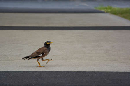 Myna is walking on the footpath.