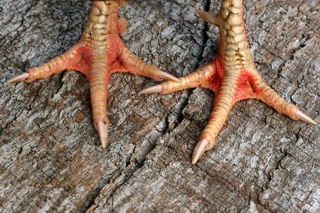 Animal bird legs. Closeup photo of claw. Rooster or chicken leg