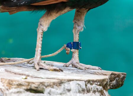 Legs of a bird on a leash .