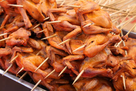 Grilled Skewer chicken and leg of chicken stick thai style barbeque on stove
