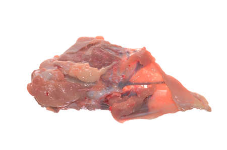 Cat food. Food background of raw chicken heads. Cat's natural raw food.