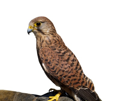 The sparrow-hawk on a white background. Aspect ratio as business card.